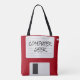 Funny retro computer geek all over tote bag with image of a old computer floppy disc in a throwback to the days of simpler computers. Replace the words computer geek with your own message if you want to customise this online. A great gag gift novelty tote bag.