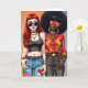 Say Happy Birthday to a friend with this funny groovy 70's vibes card. A Caucasian and African-American woman in groovy 1970's style clothes. Adorable pop art comic book style friends in 1970's vibes.