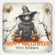 Funny retro spooky Halloween graveyard scarecrow Square Sticker