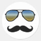 Funny Retro Sunglasses with Moustache Classic Round Sticker