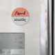 Funny and cute reversible dishwasher magnet. The "clean" side is a coral colour and says Arrival The "dirty" side is a soft grey and says Departure!