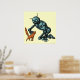 Funny robot and cat art poster