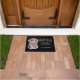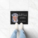 "No need to knock twice, We have a Rottweiler" declares this funny door mat. The text is in silver grey at the right side, while an picture of a black and tan Rottie is at the left. Everything is placed on a black background.
