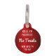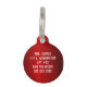 For dogs and cats who are on the chubby side. This cute ruby red tag , says 'no treats'. It's a humourous message. On the reverse you'll add your personal details. A simple design in red and white.