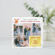 Artistic, elegant Christmas card with a cute image of Rudolph the Reindeer and four family photos, the texts "Oh deer, what a YEAR!" + "Here's to a happier one ahead!" along with "Merry Christmas and peace, love, and joy in" "202Y" (make sure you customise the year!) on a golden rectangle. With a light modern sprinkle of white and silver snowflakes and stars on the front and back. Back includes a short year-in-review letter, along with a golden Christmas tree with bells and holly and a heart.