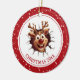 Christmas ornament with funny Rudolph the reindeer breaking through and the photo on the other side. Red snowy edges. Easily personalise all the text. - Kate Eden Art.