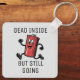 Stay charged with a touch of humour. This quirky keychain features a red running battery design alongside the cheeky phrase, "Dead Inside but Still Going." Perfect for those who thrive on caffeine and determination.