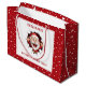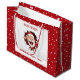 Red snowy Christmas Large Gift Bag with cute funny Santa Claus breaking through. Easily personalise the text. - Kate Eden Art.