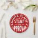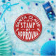 This funny Christmas design is done in red and white and made to look like it's been stamped by Santa. It says, "Santa Claus' Stamp of Approval" and show silhouettes of mistletoe, a reindeer and snowflakes. This is a cute, humourous design for the holiday season.