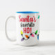 Mug for coffee, tea, milk, hot cocoa chocolate, orange juice, or any other favourite beverage. With funny 'Santa's favourite Ho!' quote text and colourful Christmas tree party string lights.