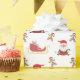 Merry Christmas holiday wrapping paper featuring funny Santa Clause with Christmas lights, Santa's sleigh with Christmas gifts and gingerbread man with Santa hat for your Christmas gift wrapping. Your present will look extra jolly under the tree.