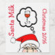 Fun full size holiday wine label done in white, with cartoon graphics of Santa's face peeking up and thinking about a glass of wine. Red text reads Santa Milk and Christmas 2016. Personalise the text to suit your holiday needs.
