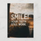 Funny and sarcastic birthday card with text "Smile! Your teeth still work" - the perfect postcard for older people.