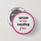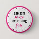 Funny Button for girls "Sarcasm, Wine, Everything Fine". Black and hot pink. Trendy typography.