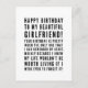 Funny sarcastic birthday wishes for girlfriend. Great card for a boyfriend who KNOWS the consequences of forgetting her birthday ( or anything important)! Classy and to the point black and white typography sentiment, "Happy birthday to my beautiful girlfriend! Your birthday is pretty much the only one that I can remember by heart, mainly because I know my life wouldn't be worth living if I were ever to forget it! " Like how I roll? Check out other designs and illustrations in my store :)