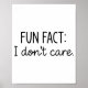 Funny Sarcastic Fun Fact I Don't Care Saying For W Poster