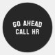 Funny Sarcastic Go Ahead Call Hr! Joking Classic Round Sticker