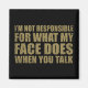 If you like funny sarcastic quotes or great humourous designs, this original slogan "I'm not responsible for what my face does when you talk" is for you. It's a great gift for your family, friends, or yourself! This design is ideal for anyone who loves sarcasm and humour. If you like this funny quote, check out more similar artworks in the Omitay store. Stay safe and thank you for supporting a local artist.
