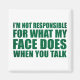 If you like funny sarcastic quotes or great humourous designs, this original slogan "I'm not responsible for what my face does when you talk" is for you. It's a great gift for your family, friends, or yourself! This design is ideal for anyone who loves sarcasm and humour. If you like this funny quote, check out more similar artworks in the Omitay store. Stay safe and thank you for supporting a local artist.