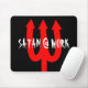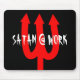 Funny satanic mouse pad with red devils fork. Evil satan symbol. Black and red demon design. Satan at work. Geeky computer / internet gift idea for programmers, help desk employees, coders, developers etc