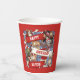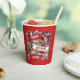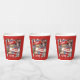 Paper cups featuring a cartoon animal menagerie of enthusiastic sports fans waving their scarves in celebration of the person or event of your choice. Change some or all of the default "HAPPY BIRTHDAY TO YOU!" text to your preferred message and/or name; text changes are reflected on both sides. The animal crowd includes dogs, a cat, a lizard and a fruit bat.