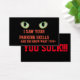 Warning style cover text with wild creepy cat mad eyes look. For people who are bad and suck at parking. Send them the notice and warning. Those eyes will make them feel someone is watching them on a parking lot.