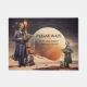 Funny doormat featuring a fantasy scene with a planet and mad scientists.