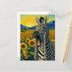 Funny Screaming Zebra in Van Gogh Sunflower Field Postcard