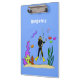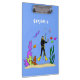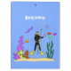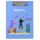 Funny scuba diver and fish sea creatures cartoon clipboard