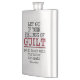 The product is a good size and came exactly as it was pictured. The lid is not attached to the flask, which could be dangerous on drunken nights... The print came out surprisingly well and looks very sharp. Would definitely recommend.