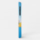 This funny case depicts two guys on little islands playing volleyball. The ball is in the water (infested with sharks) and one guy says "your serve".