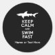 Funny Shark Warning - Keep Calm and Swim Fast Classic Round Sticker