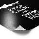 Striking black and white design with an image of a white shark and the words "Keep Calm and Swim Fast"