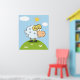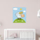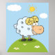 A cartoon style sheep with a funny grin on top of a hill. This design looks really effective on these Poster