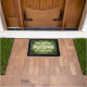 Funny shoes of please sign family welcome doormat. Custom door mat for families, business, company, shop, store, office, newlyweds, mr and mrs couple etc. Add your own fun welcome sign message, address, house number, family name, established year date, monogram, surname or humourous quote. Cute gift idea for new home or housewarming. Stylish typography template with green cactus pricks background texture image. Personalizable doormat sign with stylish black border. Create your own humour entry mat / rug for front door, entryway or hall. Customisable home decor / decorations for your luxurious house. Novelty home decor gift ideas. Available in small and big / large size.