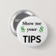 Funny Show Me Your Tips Custom Size button. Show me your TIPS typography with 2 green dollar signs. Share some humour and fun with your customers. You can customise the size and shape of your button.