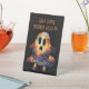 Funny sign with a ghost with a Halloween scene. "I take some getting used to."