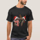 I give wanted to give this a 4 instead of a 5 because these Basic DARK T0shirts run unexpectedly SLIM or Narrow. Which is great if you do not have a potbelly, but I have a paunch. It isn't the shirt's fault that I've got a beer belly. The design and shirt itself is a quality cotton shirt. The color is more of a deep purple, but still a very pretty color. The Basic DARK T-shirts run a bit SLIMMER than the Basic Ts. The neck is a fraction narrower (or seems to be narrower) also. I'm a paunchy middle-aged woman and my neck is 12 inches (31cm) thick and the neckline fell about the same as in the photo of the man, and I had the desire to tug it a bit. So if you're a thick necked man or like loose shirts, be aware these are slimmer shirts. Once I get rid of my lockdown paunch it'll look great. The shirt washed well in cold water with no apparent bleeding. We don't have a dryer, so it hung dry. Did not shrink. Love the colors and the design. The design looks smaller on my shirt than it does on the model on-line. But still, it looks good on the shirt. The printing looks as it does on the model, just the size seems fractionally smaller. Washed garment in cold water, hung dry and design appeared unaffected.