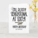 This card is great fun and good quality. I loved the humour inside and on the back. There is the opportunity to change the orientation of this card from landscape to portrait, which I did. It is relatively straightforward to amend the typeface to fit the new orientation. It was well packaged with no plastic. The printing on this card is excellent.