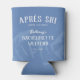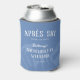 Funny ski bachelorette can coolers featuring a drawing of winter mountains, the humourous saying "let's get sloppy on the slopes", and a text template that is easy to personalise.