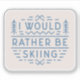 Ski lovers funny quotes I would rather be skiing retro blue aesthetic nordic skiers small gifts sticker decor.