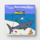 Funny sleeping shark and fishing cartoon plaque