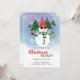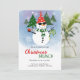 Kick off your holiday celebration with this bold and playful party invitation featuring a snowman who knows how to make an entrance. Wearing a red Santa hat, black sunglasses, and a green scarf, he stands confidently among decorated pine trees and falling snowflakes. The background blends cool watercolor tones with a festive winter sky, and the editable poem lets you set the tone — whether it’s quirky, heartfelt, or cheeky.