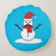 Funny Snowman with Moustache and Carrot Round Cushion