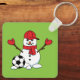 An illustration of a snowman with a red cap, red gloves and a soccer football ball. This design is a combination of Christmas and sports spirit. Celebrating Christmas brings family together with good food and a good chat while sports brings family best bonding. If you are a winter lover, snow lover, and soccer or football lover then this drawing is for you.