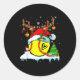 Funny Softball Christmas Reindeer Santa Hat Lights Classic Round Sticker