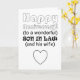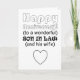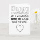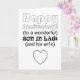 This funny anniversary greeting card humorously turns things around a bit by highlighting the son in law and playfully placing the daughter, his wife, in a somewhat secondary status.