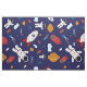 The theme of the universe with planets, meteors, and cosmonauts.
