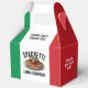 Mangiamo! Make that Italian family reunion memorable and a riot with these spaghetti eating champions favor boxes, which feature the colors of the Italian flag and an image of a delicious heaping plate of my favorite Italian pasta, topped with tomato sauce, meatballs, and basil leaves! Reverse shows identical design. Personalize with surname or event name. A great way to take home and enjoy some leftovers!