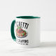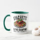 Make that Italian family reunion memorable and a riot with this spaghetti eating champions two-tone combo mug, which features an image of a delicious heaping plate of my favorite Italian pasta, topped with tomato sauce, meatballs, and basil leaves! Reverse shows identical design. Personalize with surname or event name!